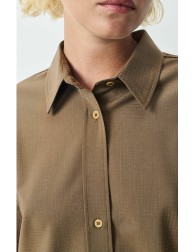 Cette chemise allie simplicité et sophistication grâce à une coupe parfaitement ajustée qui épouse la silhouette sans contrainte. Son tissu de qualité offre un tombé fluide et un confort durable, idéal pour passer de la journée au soir en toute aisance. Sa teinte sobre et ses finitions soignées en font un basique chic, facile à associer à vos looks casual ou plus habillés.