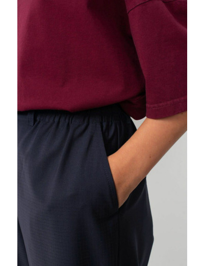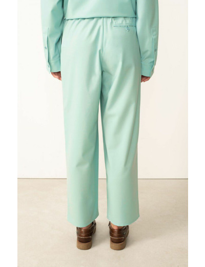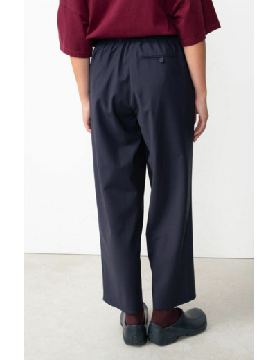 Confectionné dans un tissu de qualité, ce pantalon allie confort et tenue impeccable. Sa coupe fluide et légèrement ajustée offre une silhouette affinée tout en garantissant une liberté de mouvement optimale. Son design minimaliste se prête à une multitude d’associations, du chemisier structuré au t-shirt casual.