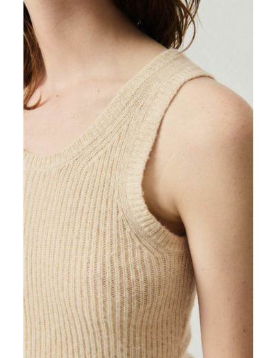 Réponse : Le débardeur est fabriqué dans un tissu léger et doux, typique de la qualité American Vintage.