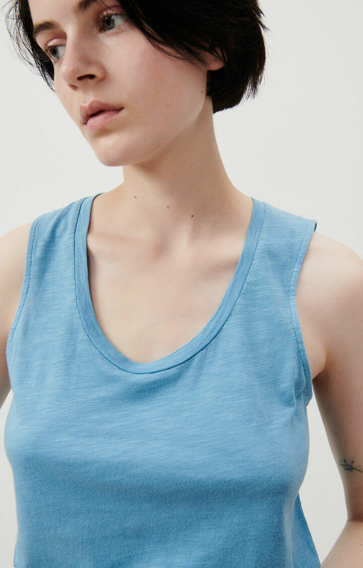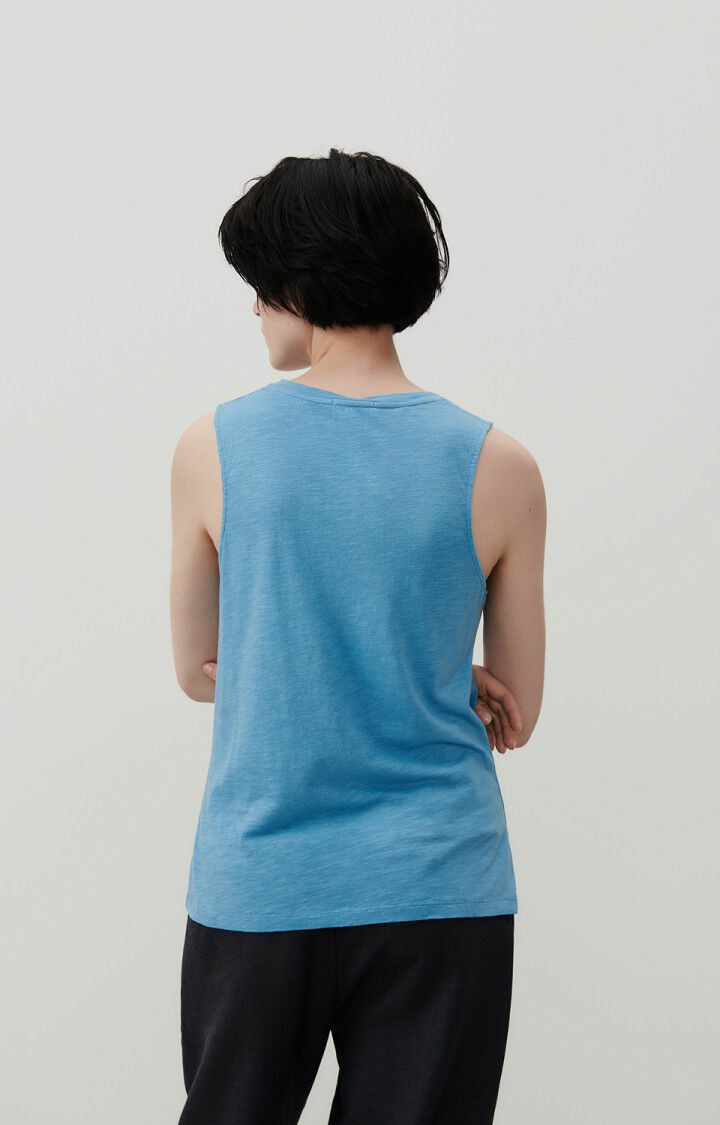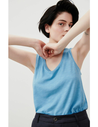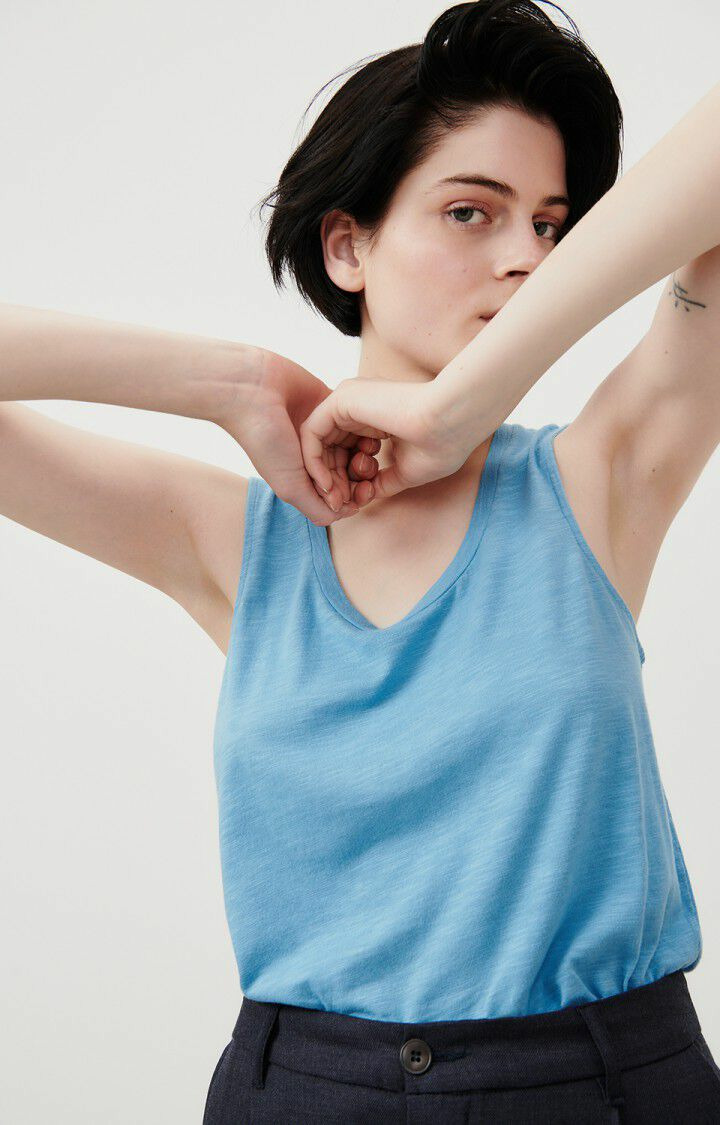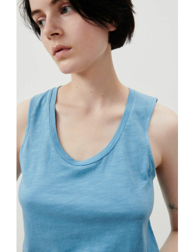 Réponse : Le débardeur est fabriqué dans une matière douce et légère, typique des créations American Vintage.