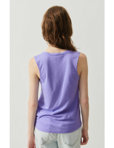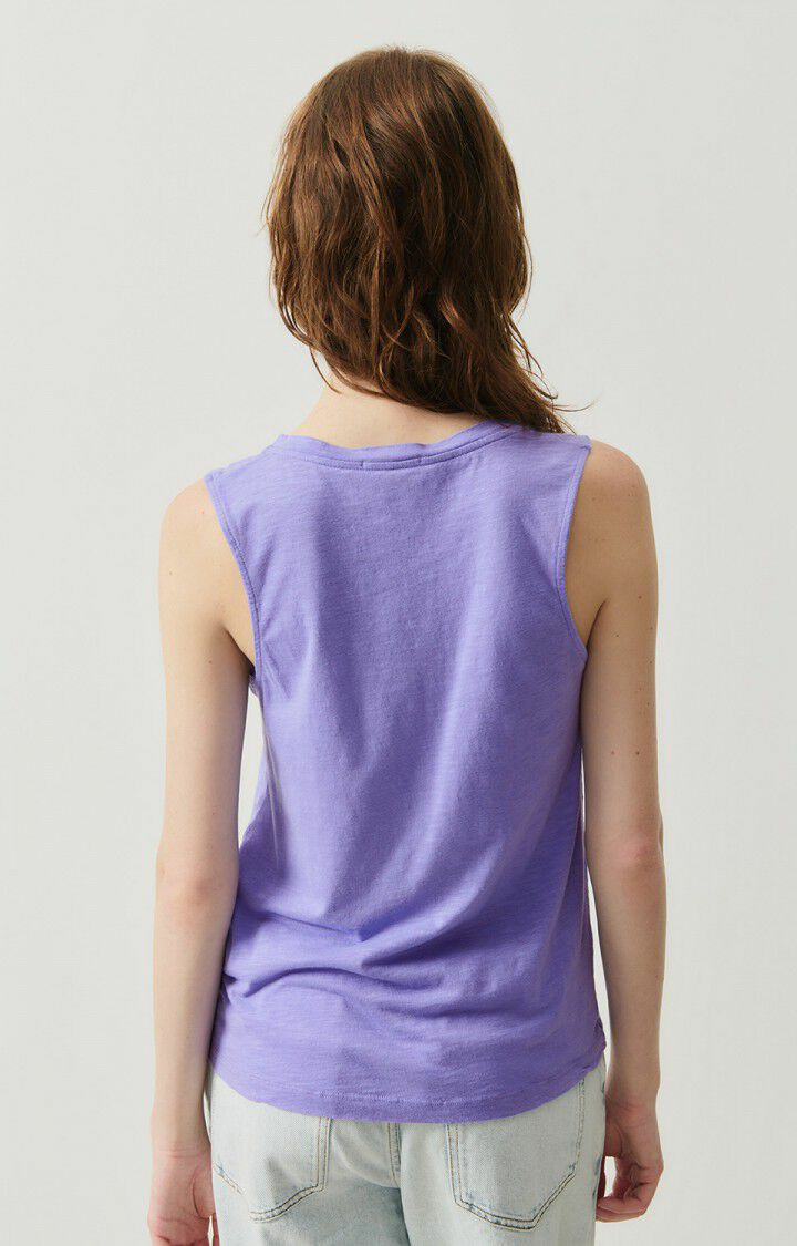 Réponse : Le débardeur est fabriqué dans une matière douce et légère, typique des créations American Vintage.