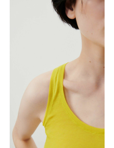 Confectionné par American Vintage, ce débardeur allie confort et élégance grâce à son tissu doux et léger qui épouse délicatement la silhouette. Son design minimaliste se prête aussi bien à un look casual qu’à une tenue plus sophistiquée, pour une polyvalence sans compromis.
