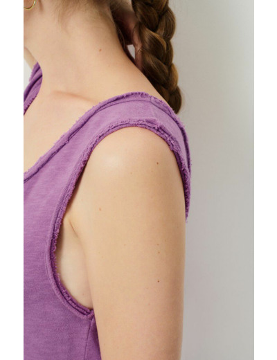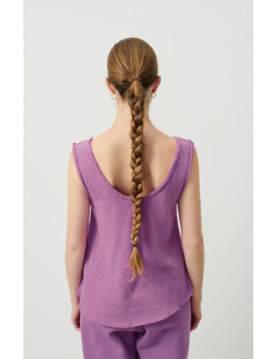 Réponse : Le débardeur est fabriqué dans une matière douce et légère, conçue pour un confort optimal.