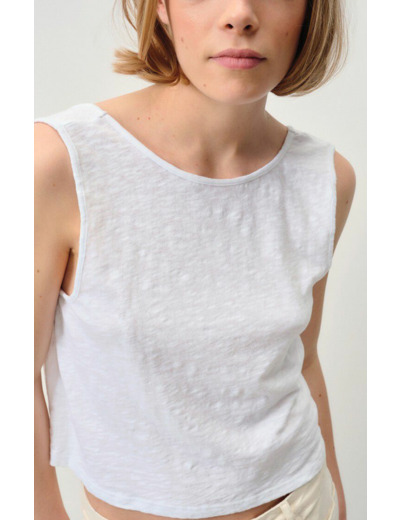 Confectionné dans un tissu doux et léger, ce débardeur épouse parfaitement la silhouette tout en offrant une grande liberté de mouvement. Son design épuré et ses finitions soignées en font un incontournable pour un look naturel et moderne, à porter seul ou en superposition.