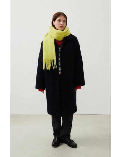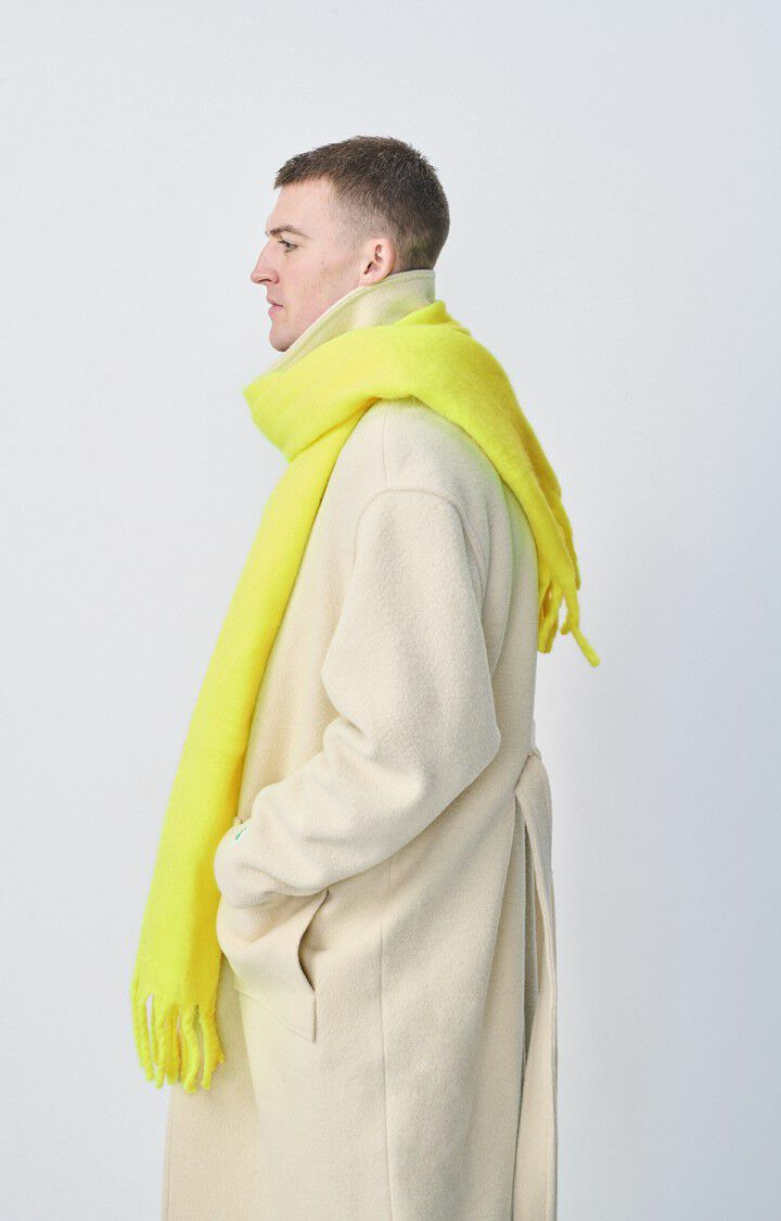 Fabriquée par American Vintage, cette écharpe se lave à la main pour préserver la qualité des fibres. Le séchage en tambour est interdit, privilégiez un séchage à plat. Le repassage doit être effectué à basse température, et un nettoyage à sec est possible pour un entretien soigné.