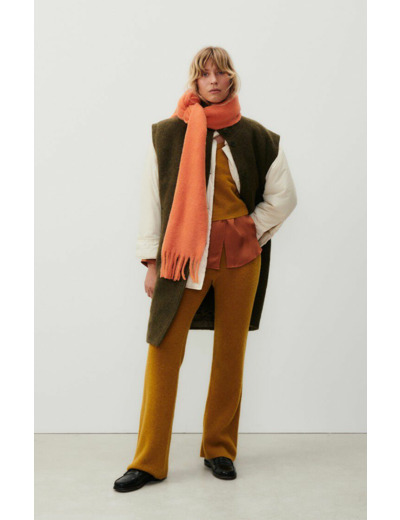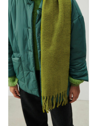Conçue dans des matières soigneusement sélectionnées, cette écharpe offre une texture douce et agréable au toucher, idéale pour envelopper votre cou sans compromis sur la légèreté. Son design épuré et ses couleurs neutres s’adaptent aussi bien aux looks décontractés qu’aux styles plus sophistiqués, pour un rendu moderne et intemporel.