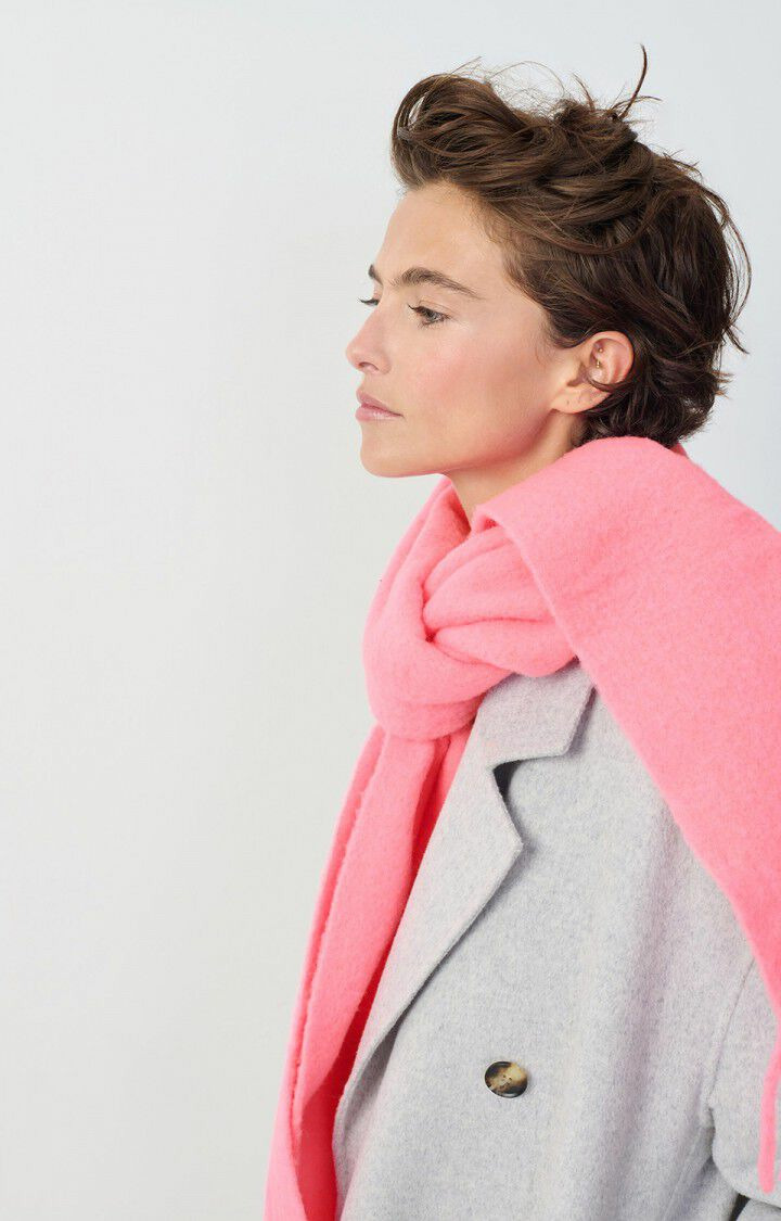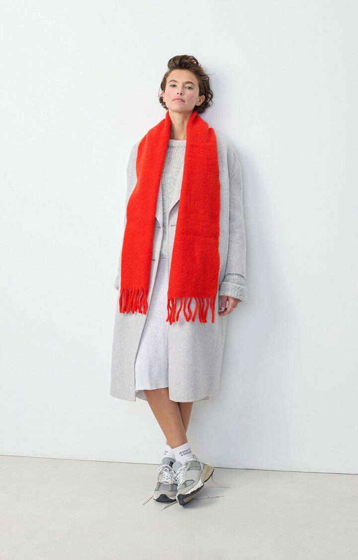 Conçue dans des matières soigneusement sélectionnées, cette écharpe offre une texture douce et agréable au toucher, idéale pour envelopper votre cou sans compromis sur la légèreté. Son design épuré et ses couleurs neutres s’adaptent aussi bien aux looks décontractés qu’aux styles plus sophistiqués, pour un rendu moderne et intemporel.