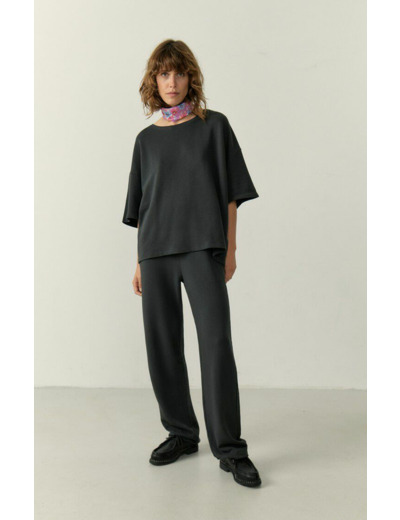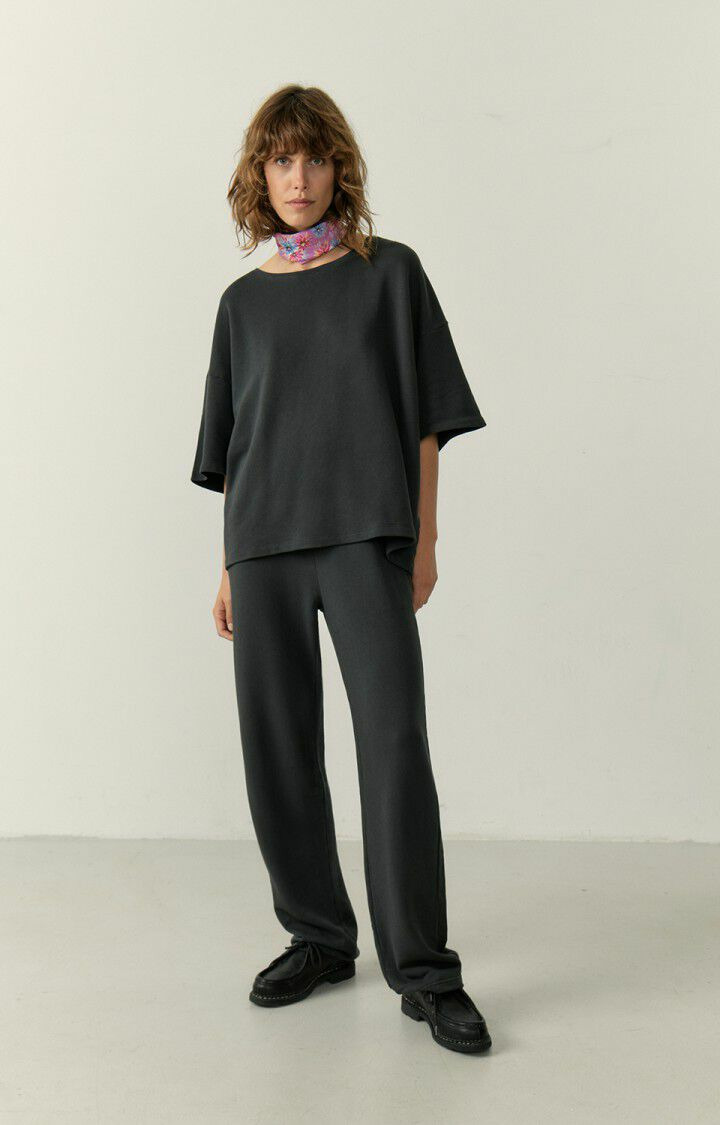 Confectionné dans une matière douce et respirante, ce pantalon offre une coupe moderne et fluide qui épouse parfaitement la silhouette sans la contraindre. Son design minimaliste et ses finitions soignées reflètent l’esprit casual chic de la marque, pour un look à la fois simple et sophistiqué.