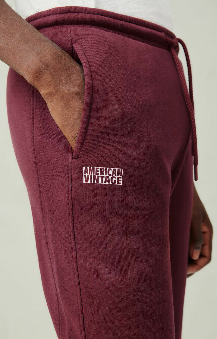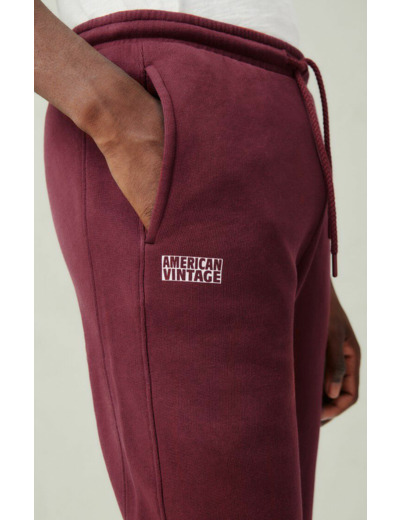 Réponse : Le jogging est fabriqué dans une matière douce et résistante, typique des collections American Vintage, garantissant confort et longévité.