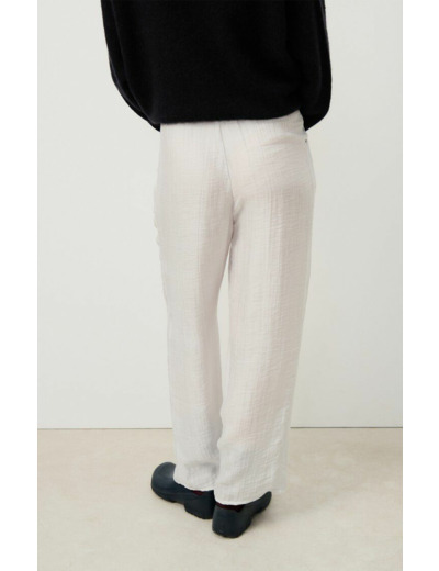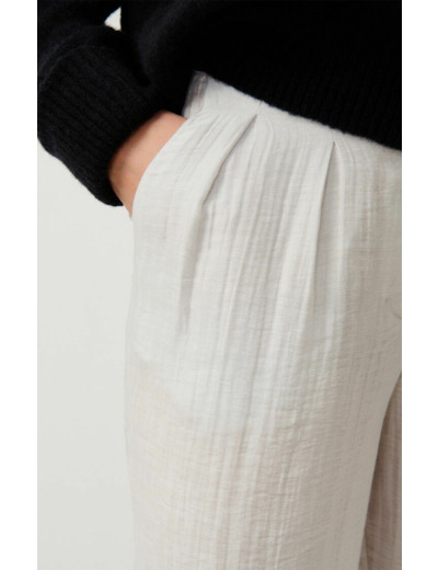 Confectionné dans une matière douce et fluide, ce pantalon épouse les formes sans les contraindre, offrant une liberté de mouvement idéale. Sa coupe moderne et épurée s’adapte aussi bien à un look casual qu’à une tenue plus sophistiquée, pour un dressing qui suit toutes vos envies.