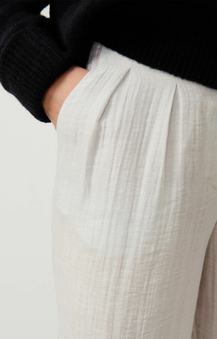 Réponse : Le pantalon offre une légère élasticité pour un confort optimal sans déformer la silhouette.