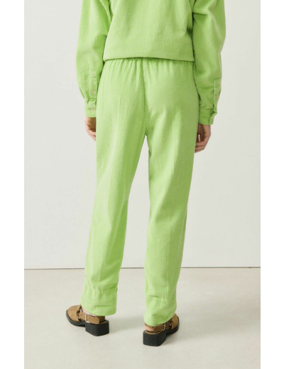 Entretien simple : lavage à 30 degrés, séchage en tambour interdit, repassage à basse température. Ce pantalon conserve sa tenue et sa couleur lavage après lavage.