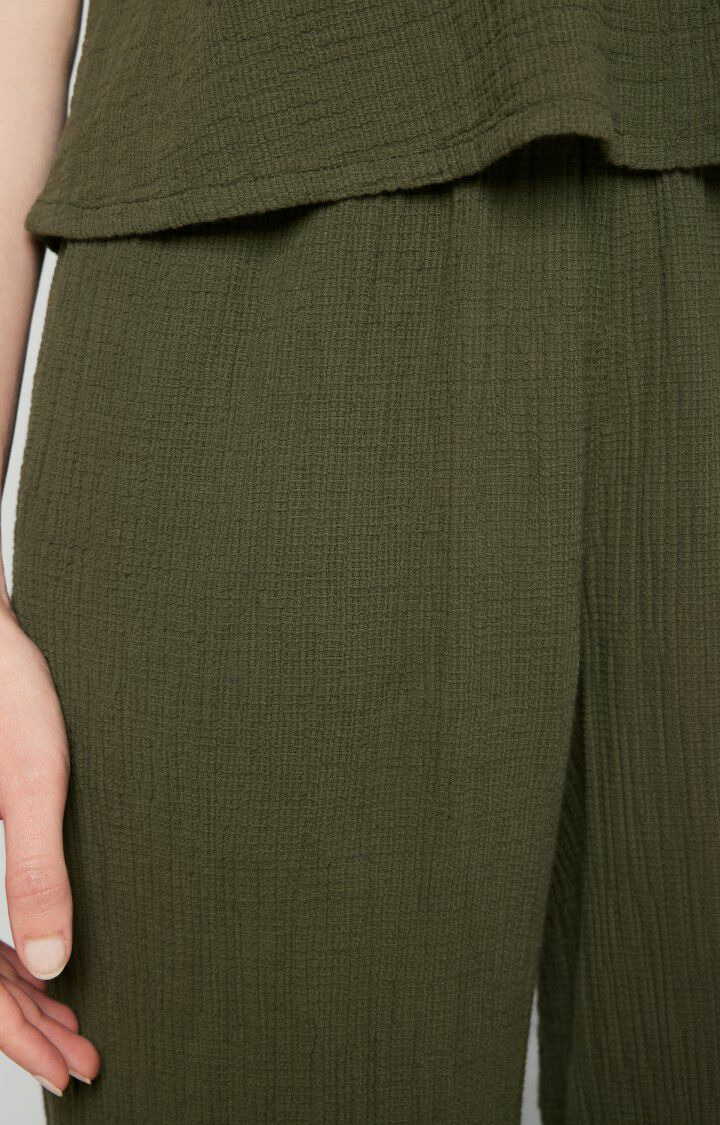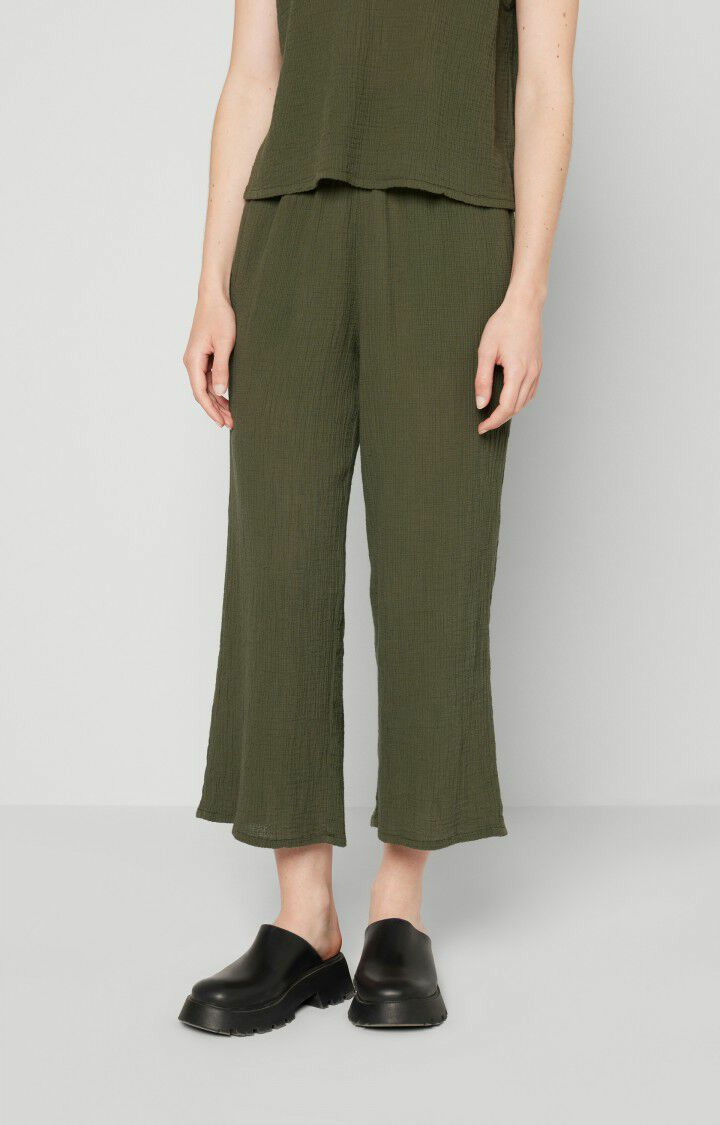 Réponse. Le pantalon est conçu dans une matière douce et légère, typique des créations American Vintage, assurant confort et durabilité.