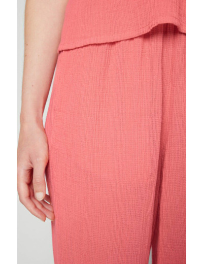 Lavage à 30 degrés conseillé pour préserver la qualité du tissu. Séchage en tambour interdit afin de conserver la forme et la texture du pantalon.