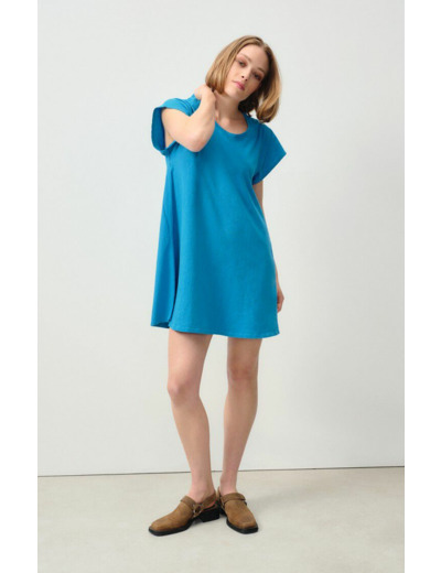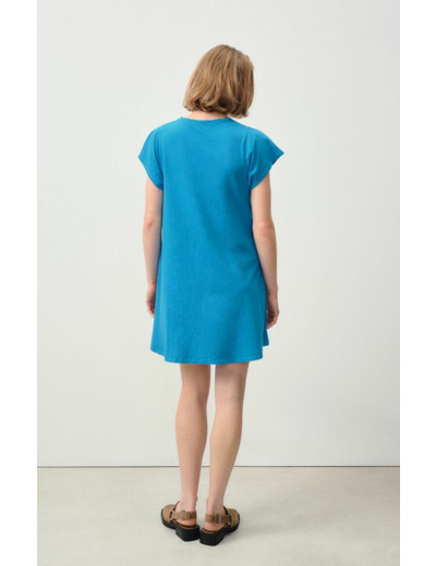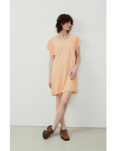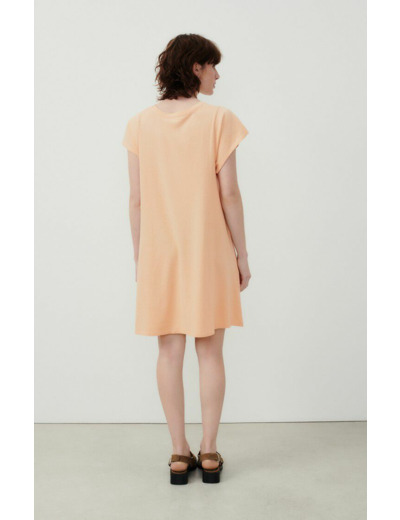 Réponse. La robe est conçue dans un tissu doux et respirant, typique des créations American Vintage, garantissant confort et qualité.