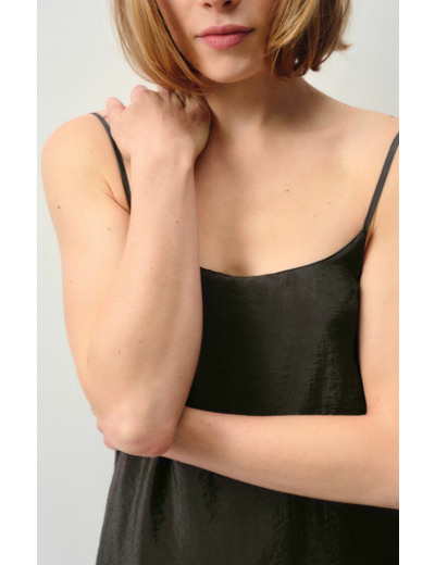 Réponse. Sa coupe fluide et épurée est conçue pour s’adapter à différentes silhouettes, offrant un tombé naturel et élégant.