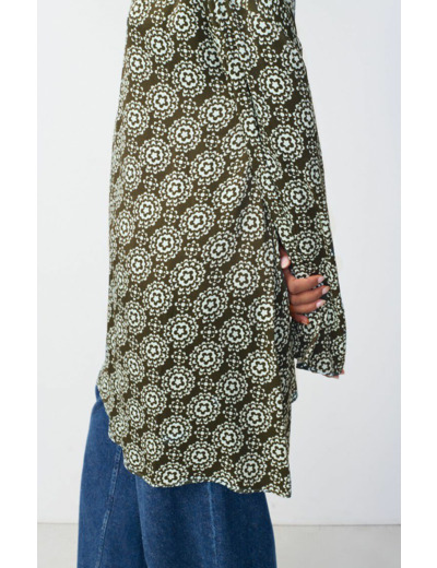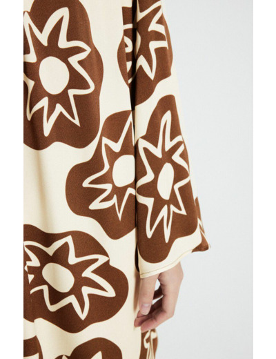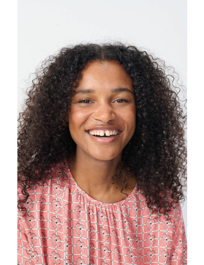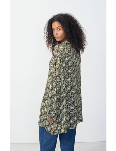 Réponse : Oui, sa coupe fluide est pensée pour s’adapter à différentes silhouettes tout en mettant en valeur la taille.