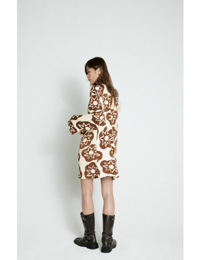 Entretien simple : lavage en programme délicat à 30°C, séchage tambour interdit, repassage à basse température. Ces consignes garantissent la longévité et la qualité de la robe.