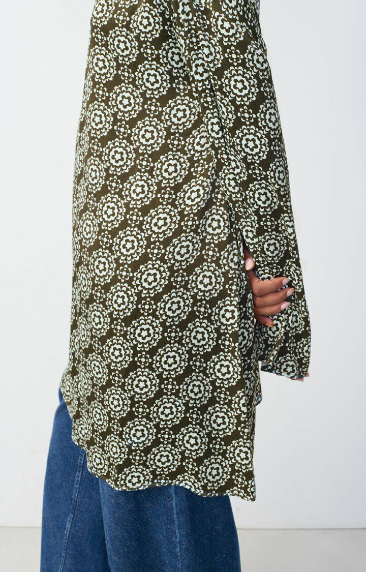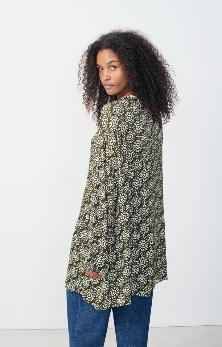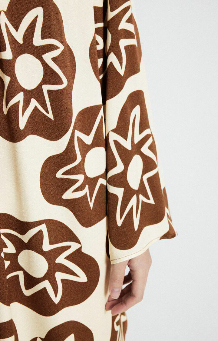 Réponse : Oui, sa coupe fluide est pensée pour s’adapter à différentes silhouettes tout en mettant en valeur la taille.