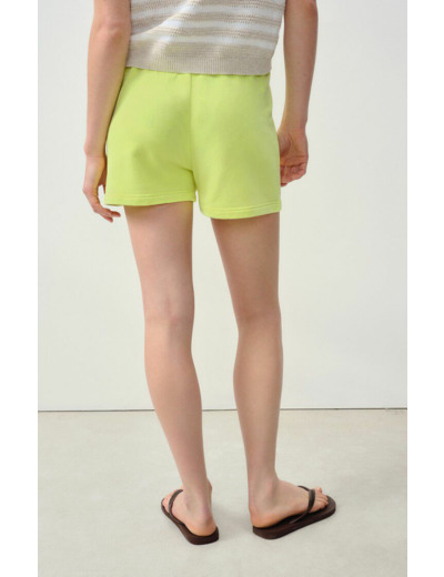 Réponse : Ce short est conçu dans un tissu doux et léger, typique de la qualité American Vintage, garantissant confort et durabilité.
