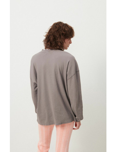 Réponse. Le sweat est conçu dans un tissu doux et léger, typique des créations American Vintage, garantissant confort et durabilité.