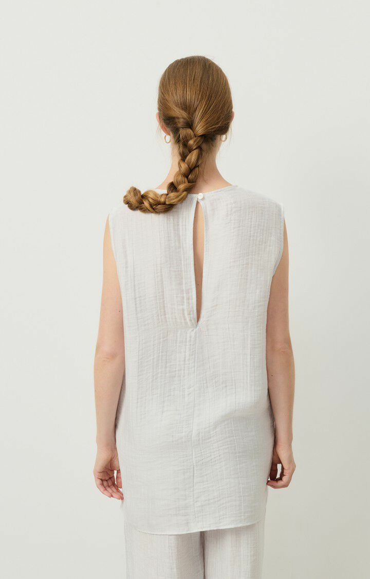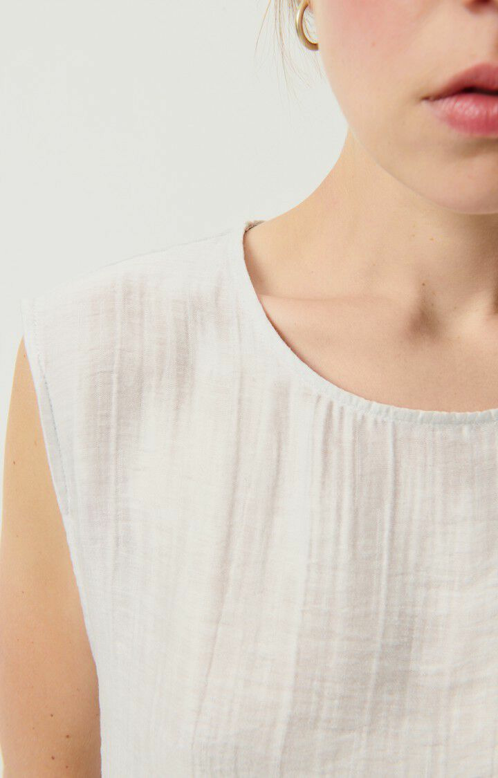 Ce top vous garantit une liberté de mouvement totale et une tenue impeccable, même lors des journées les plus chaudes. Sa polyvalence vous permet de varier les styles sans effort, tout en restant élégante et féminine.