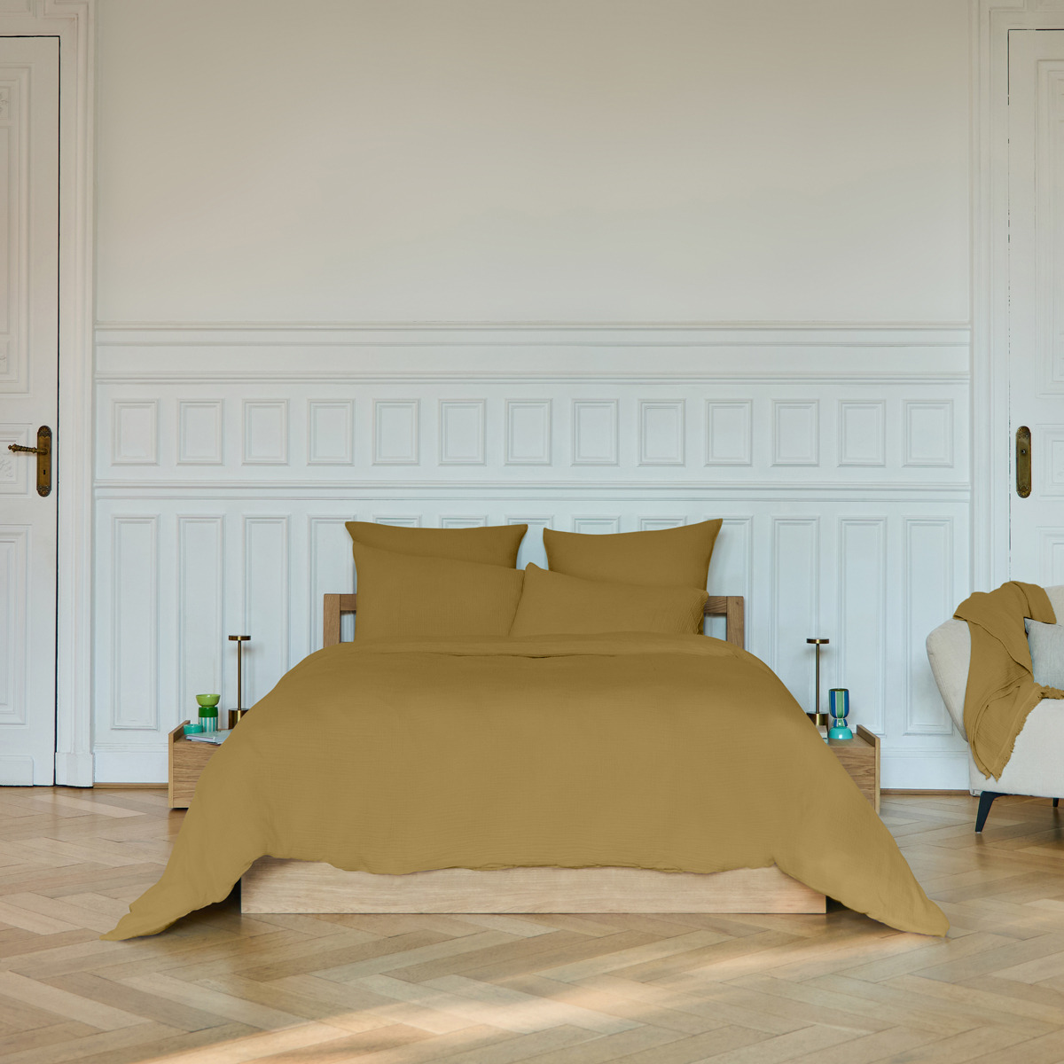 Confectionnée dans une matière aérienne et texturée, elle séduit par son toucher délicat et son aspect légèrement froissé, apportant une touche cosy et naturelle à votre chambre.