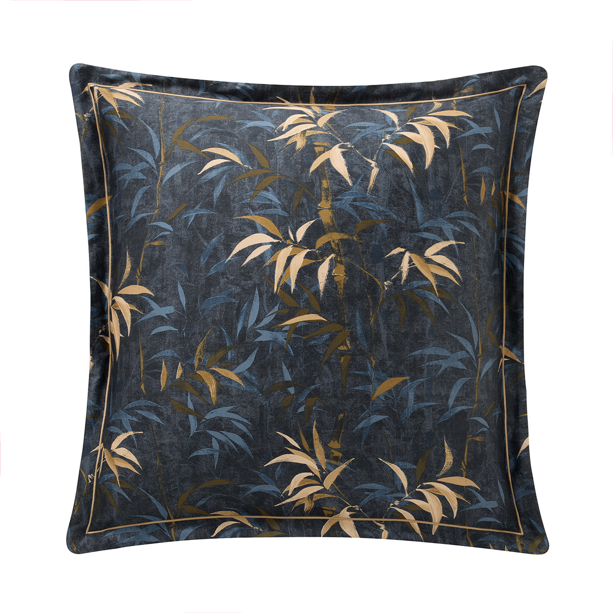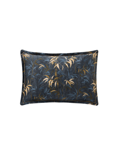 L'envolée légère des feuilles de bambou dans des teintes nocturnes et dorées sur le recto s’harmonise aux palmettes du verso.