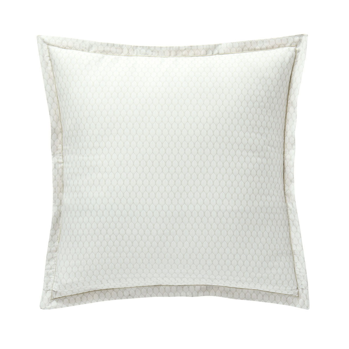 Le dos de la taie s’anime d’une délicate palmette art déco blanche sur fond grège et insuffle une touche précieuse.