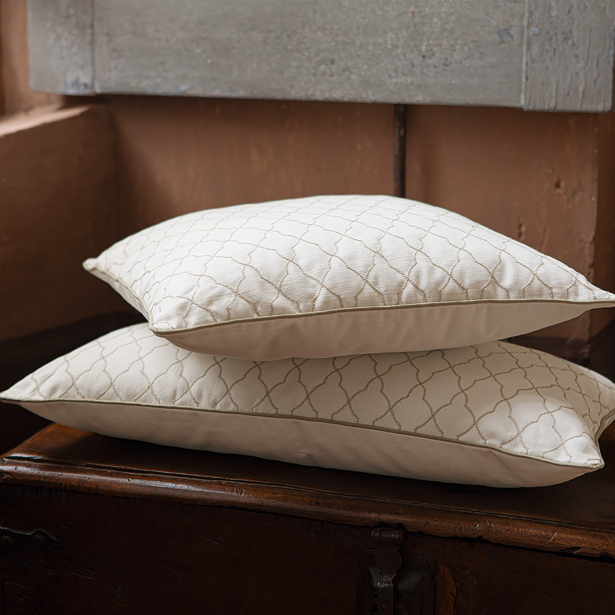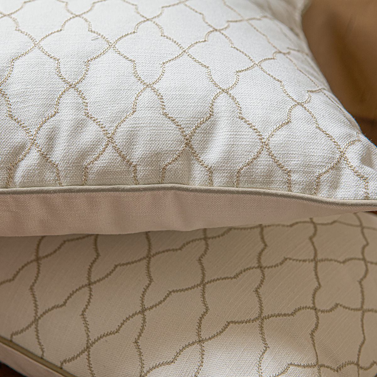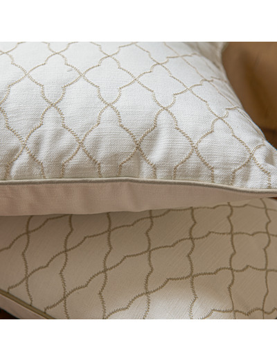 Fabriqués à 100% en coton, ces coussins sont ornés d'un motif arabesque brodé, ajoutant une élégance intemporelle à votre décor. Un zip discret permet d’enlever la housse et facilite ainsi son entretien.