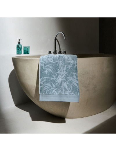 Dans les tons délicats bleu fjord, il affiche un tissage dense de 550 g/m² garantissant à la fois confort, absorption et tenue dans le temps.