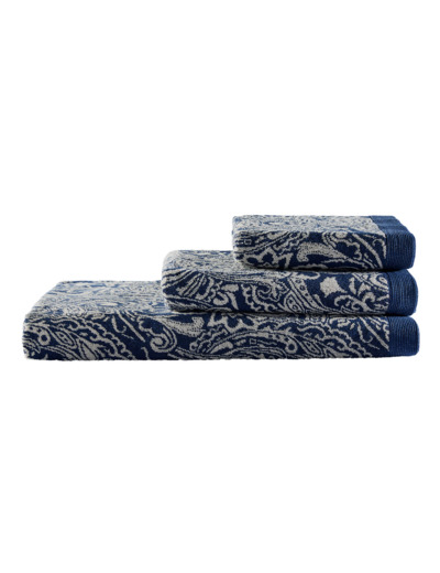 Le motif cachemire dans des nuances de bleu foncé et de beige ajoute une touche d'élégance résolument moderne.