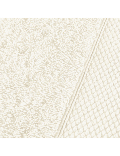 Présentant un motif uni sur ses deux faces décliné dans un coloris blanc chèvrefeuille, ce drap de douche se caractérise par ses finitions très soignées, à l'image de la broderie bourdon double qui souligne sa découpe.