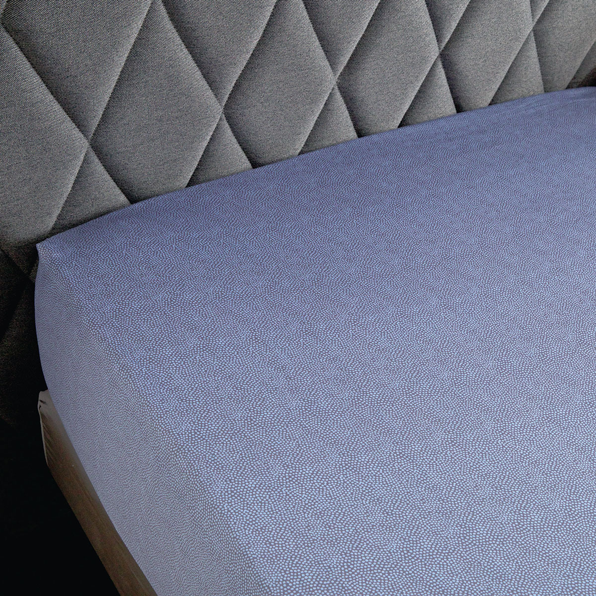 A la manière des peux de cuirs de Galuchat, le semis de pois irréguliers anime le drap housse.