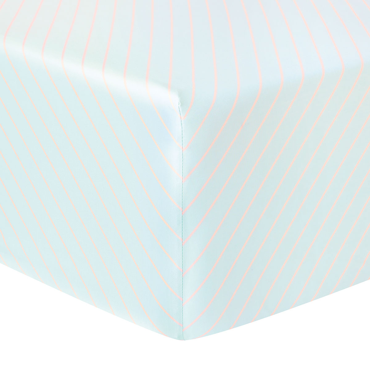 Une écriture résolument moderne pour ces fines rayures de couleur melon sur fond vert clair.