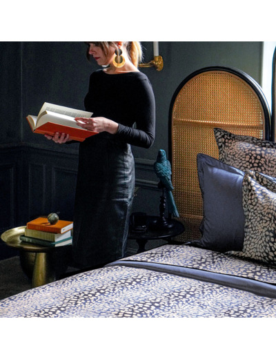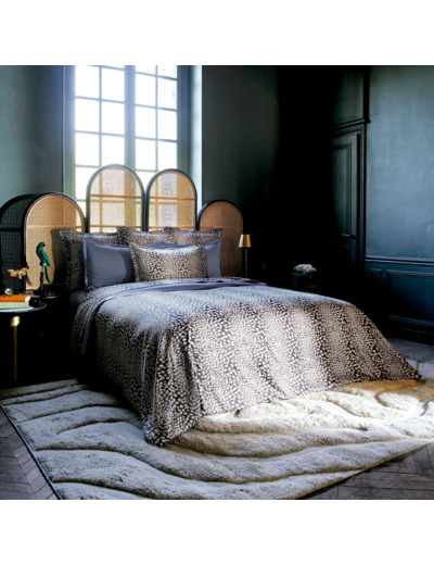 La housse de couette est réversible sur un dessin qui évoque les peaux de cuirs de Galuchat et qui souligne son caractère très décoratif.
