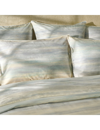 Le modèle SILLAGE est disponible en taies d’oreillers et drap plat. Il est associé à l’uni satin 120 fils/cm² ECLAT sable pour le drap housse et la taie de traversin.
