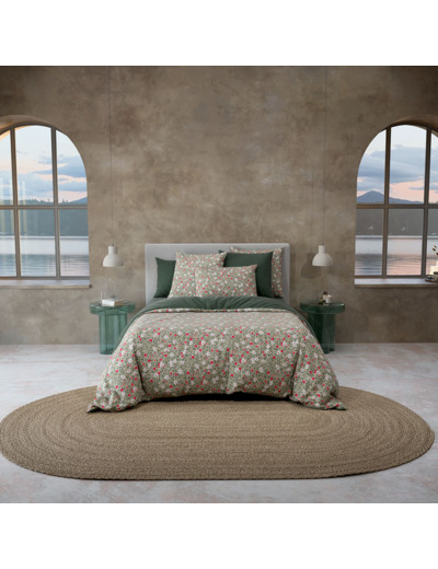 Confectionnée en percale de coton 80 fils/cm², la parure FINCA associe douceur et légèreté pour des nuits apaisantes. Son recto, orné d’un imprimé floral multicolore, et son verso en uni coloris Garrigue, s’accordent parfaitement pour offrir une esthétique raffinée et harmonieuse.