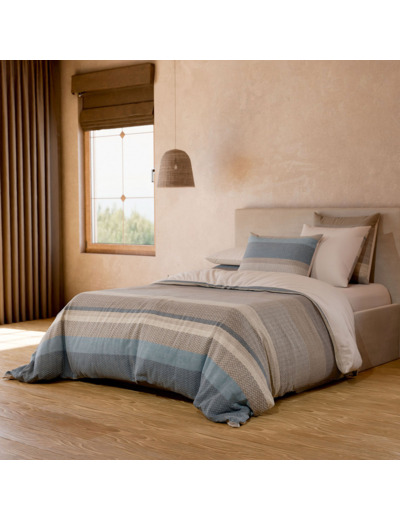 Laissez-vous séduire par l'élégance exotique de notre parure de lit HOME. Son motif à rayures ethniques, insufflera une atmosphère chaleureuse à votre espace de repos. Confectionnée en percale 80 fils 100% coton, cette parure garantit un toucher doux et une résistance exceptionnelle, pour des nuits de confort inégalé.