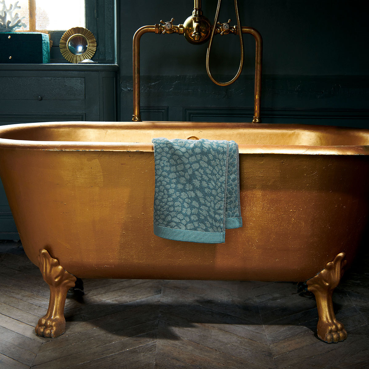 Son motif animalier vert canard et son liteau travaillé ajoutent une note d'élégance à votre routine quotidienne.