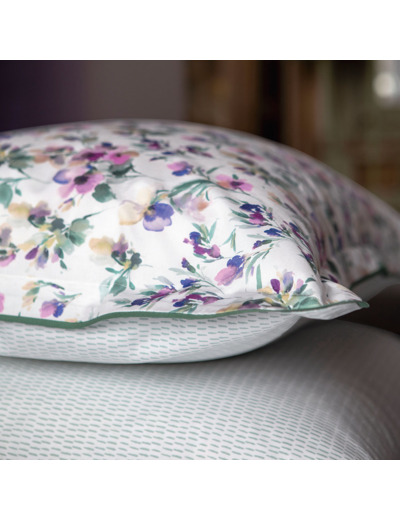 Les taies offrent un motif aquarellé floral réversible sur un micro-motif évoquant la beauté et la simplicité de la nature.