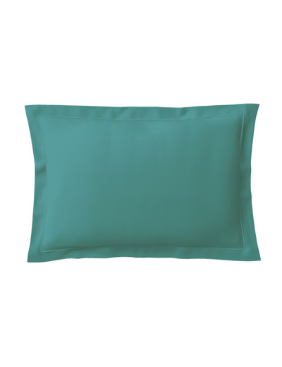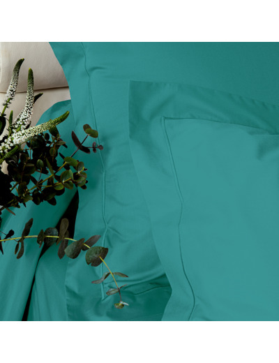 La taie d'oreiller Vexin Emeraude est composée en percale 100% coton peigné longues fibres d'une densité de 80 fils/cm². Elle dispose d'un volant plat de 5 cm.