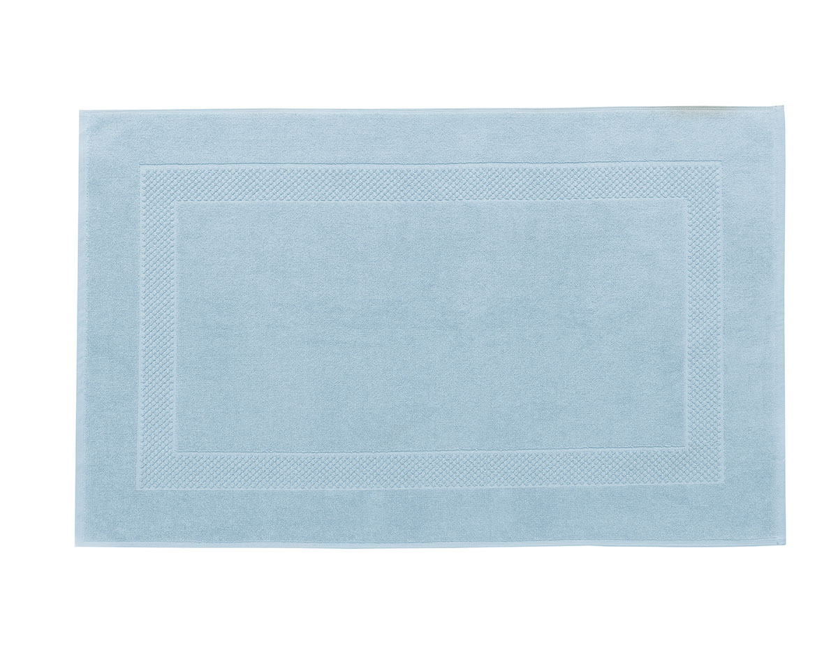 Un tapis de bain en éponge coton d'un beau bleu Azur qui donnera une touche colorée à votre salle de bain.