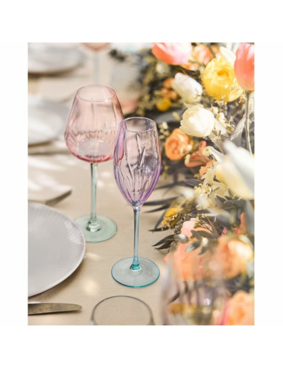 La collection Swirly s’inspire d’un tourbillon de créativité où le rose et le mauve s’entrelacent pour créer un effet visuel unique. Ces flûtes en cristallin offrent une légèreté et une transparence remarquables, sublimant aussi bien les cocktails que les bulles de votre champagne. Parfaites pour des moments conviviaux ou des repas raffinés, elles insufflent une ambiance poétique et moderne à chaque occasion.