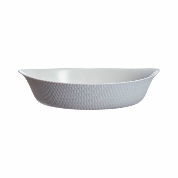 Dimensions : 32x20 cm. Matière : verre opale. Résiste jusqu’à 250°C. Fabriqué en France. Compatible four.