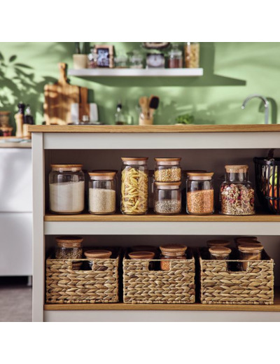 Ce bocal en verre transparent met en valeur vos ingrédients tout en facilitant leur identification rapide. Son couvercle en bois apporte une touche chaleureuse et authentique, idéale pour un rangement soigné et esthétique. Hermétique, il protège efficacement farine, riz, sucre ou fruits secs de l’humidité et des insectes, prolongeant ainsi leur fraîcheur.