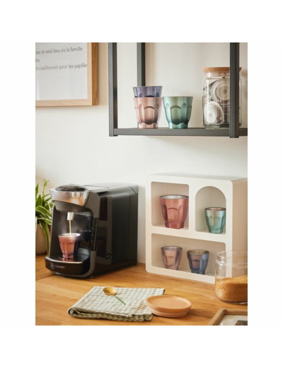 Réponse : La tasse a une capacité de 9cl, idéale pour les expressos et petites boissons.
