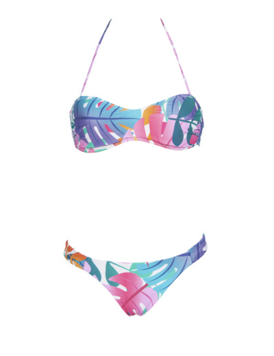Ce bikini bandeau séduit par sa coupe moderne et son maintien optimal grâce à des bonnets fixes et une doublure douce. Sa matière MaxFit ultra-résistante au chlore et à l’eau salée assure une tenue impeccable, tandis que la protection UV UPF 50+ vous protège efficacement du soleil. Les liens ajustables au niveau du cou offrent un maintien personnalisé, disponible en plusieurs motifs estivaux pour affirmer votre style.