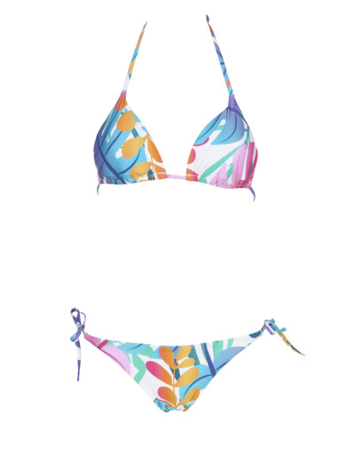 Ce bikini se distingue par sa matière MaxFit ultra-résistante au chlore et à l’eau salée, offrant une durabilité exceptionnelle. Sa protection UV UPF 50+ vous protège efficacement du soleil, tandis que l’élasthanne assure une tenue parfaite et un confort optimal. Les bonnets amovibles et la doublure douce garantissent un ajustement personnalisé, renforcé par les liens réglables du haut et du bas. Disponible en plusieurs motifs estivaux, il s’adapte à toutes vos envies mode.