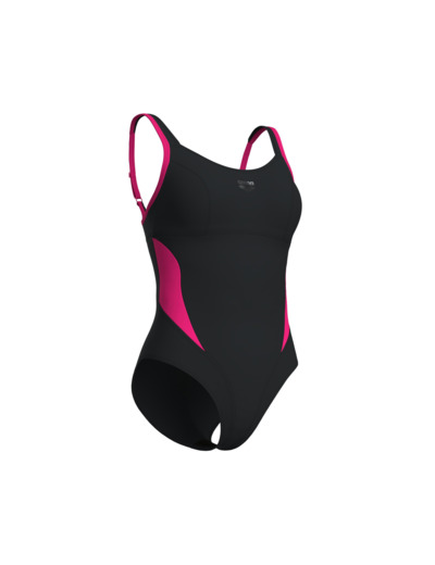 Ce modèle haut de gamme intègre la technologie Power Mesh pour lisser la taille et une double couche de tissu qui assure un maintien aérodynamique. Fabriqué en Sensitive® Fabrics, il résiste au chlore, sèche rapidement, protège des UV et utilise du polyamide recyclé, alliant performance et respect de l’environnement. Le soutien-gorge intégré avec bande élastique et bretelles ajustables garantit un maintien sûr et un confort durable.